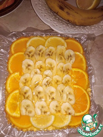 По истечении 40 минут, выложить на творожный слой подготовленные фрукты