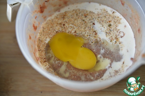 Добавляем яйцо, молоко, соль, смесь перцев. Измельчаем блендером или просто перемешиваем венчиком.