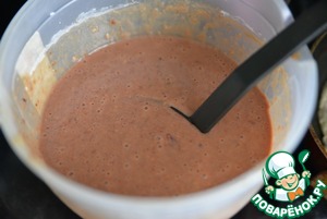 Перемешиваем всё до однородного состояния. Тесто должно быть чуть гуще, чем на обычные блины.