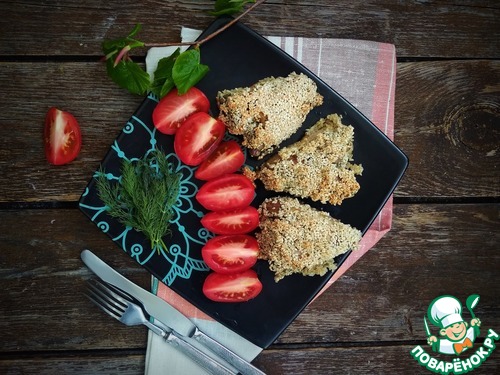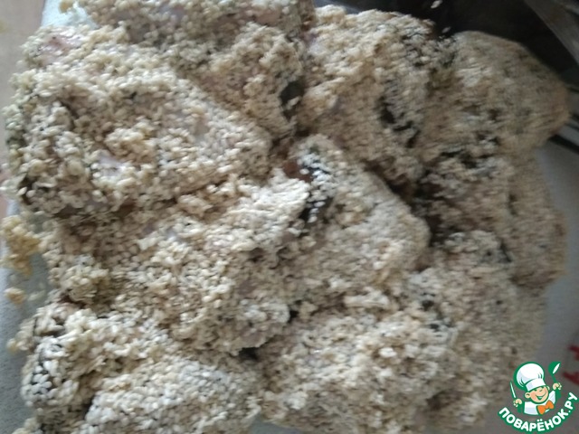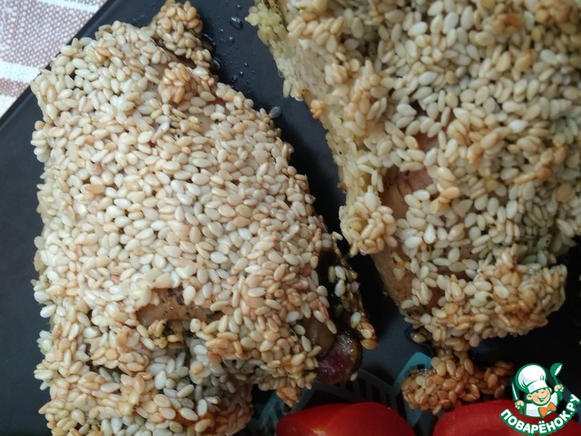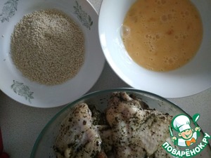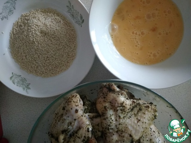 Каждое крылышко обмакнуть в яйцо, потом обвалять в кунжуте. -