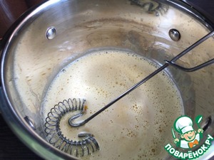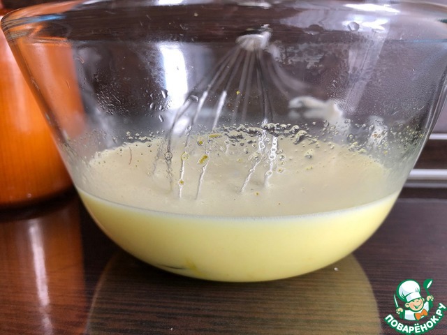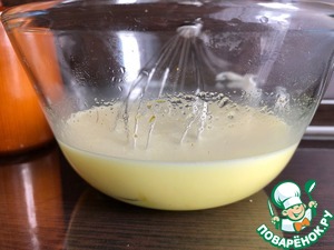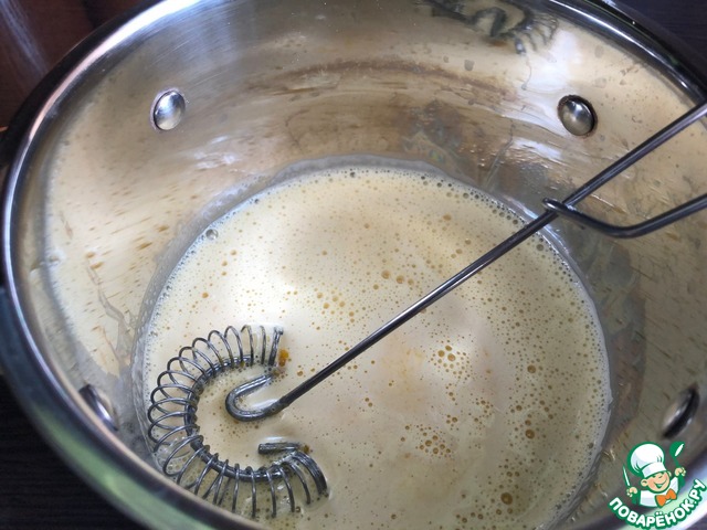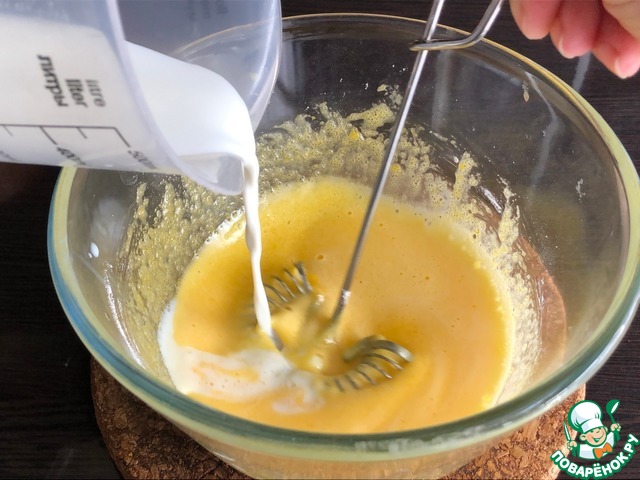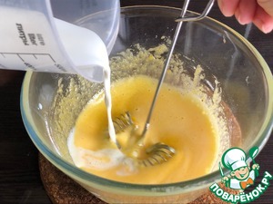 • - Молоко нагреваем до 60 гр. и тонкой струйкой добавляем к желтковой массе.