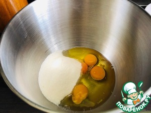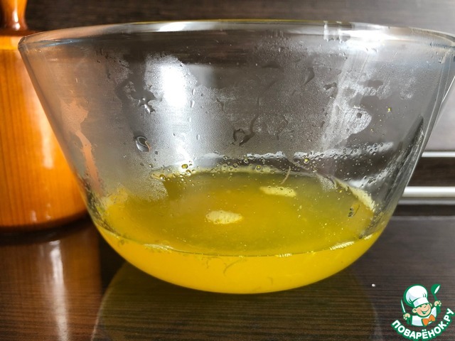 - Желтки, крахмал, сахар перемешиваем венчиком до посветления.
