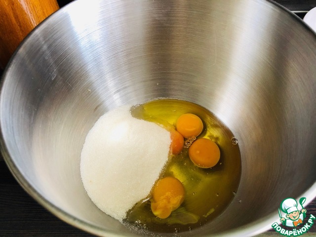 • 1. Готовим бисквитное тесто: - Взбиваем яйца с сахаром на самой высокой скорости миксера 5 - 7 минут.