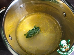 • - Лаймовый сироп переливаем в миску, убираем листики мелиссы, остужаем до 50 гр.