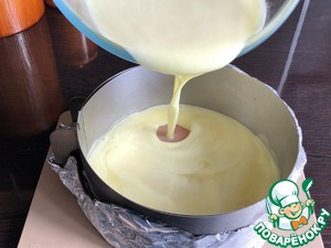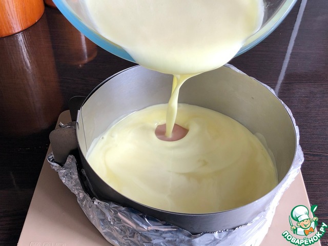 - Я собираю в силиконовой форме ( можно собирать в разъёмном кольце, предварительно дно кольца застелить пищевой плёнкой).