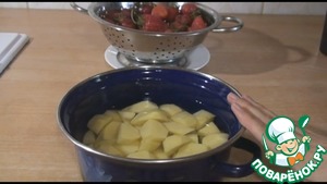 Картофель почистить и поставить на огонь. Когда закипит, добавить 1 ч. л. соли и отварить до готовности.