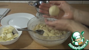 Оно должно получиться мягким и липнущим к рукам, это нормально. У меня в этот раз картошка была особенно водянистая, я добавила еще к указанным 300 гр муки примерно 100 грамм, но старайтесь сильно тесто не забивать мукой, тогда кнедли будут жесткими.