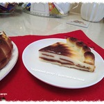 Назвать это творожной запеканкой у меня не повернётся язык. Потому что на вкус это очень похоже на чизкейк с фруктовыми добавками. Но и чизкейком не назовёшь, потому что готовится из творога. Нежный творожный десерт с прослойками яблочно-вишнёвой пастилы. Нежно-творожно-фруктово на вкус и очень красиво на срез. Чтобы срез был красивым и не "поплыл", десерту надо дать постоять в холодильнике до полной стабилизации.