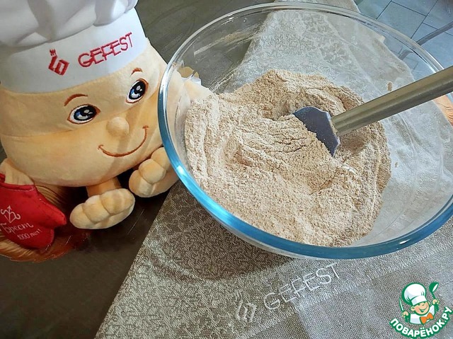 Насыпаем в миску все сухие ингредиенты для коржей - муку, сахар, соль, какао, разрыхлитель - и перемешиваем.