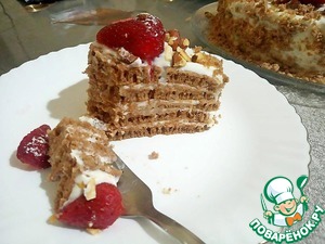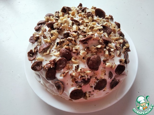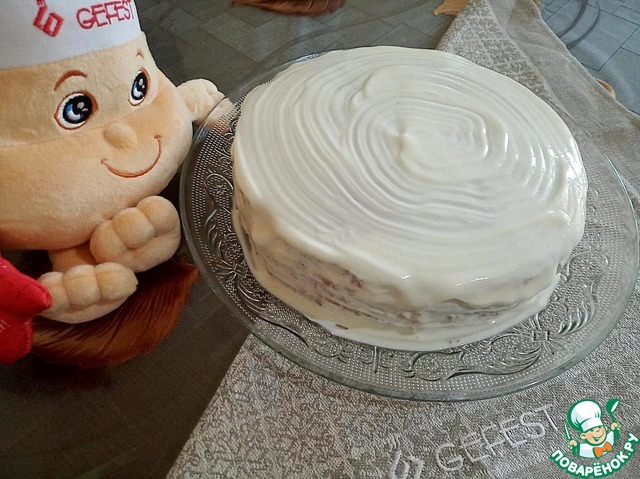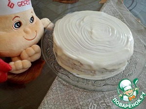 Смазываем кремом верх и края торта и убираем в холодильник на 3 часа.