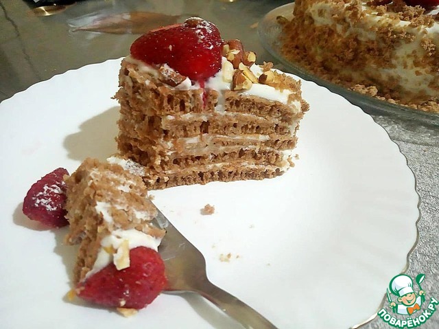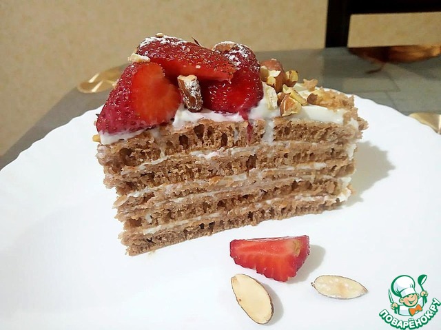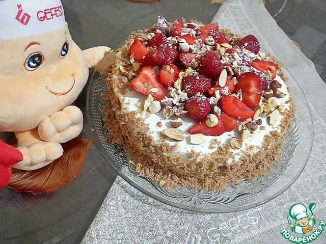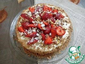 Рецепт «Торт на сковороде с клубникой и орехами»: