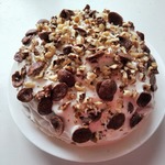 Фундук и миндаль чуть поджариваем на сухой сковороде и произвольно измельчаем. А теперь украшаем торт орехами и клубникой.