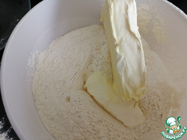 Посеять муку, добавить ванилин и разрыхлитель, добавить мягкое сливочное масло