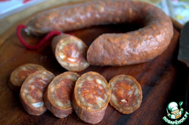 В морозилке я держу колечко пикантной колбаски чоризо для таких случаев. Также она хороша в тушёной капусте и в горшочках, остренькая.