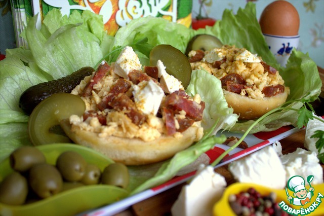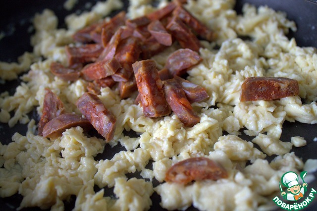 Рецепт «Рваный омлет с чоризо и брынзой»: