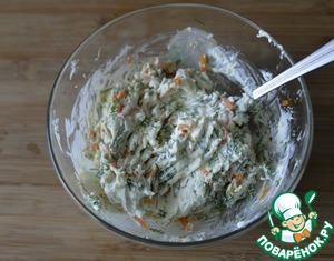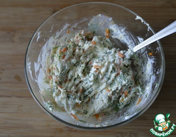 Перемешиваем крем из творожного сыра с морковью и укропом.