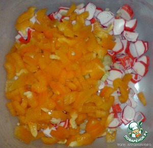 Мелко нарезаем сельдерей и небольшими кубиками перец.