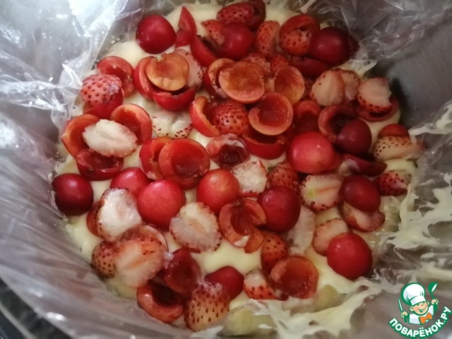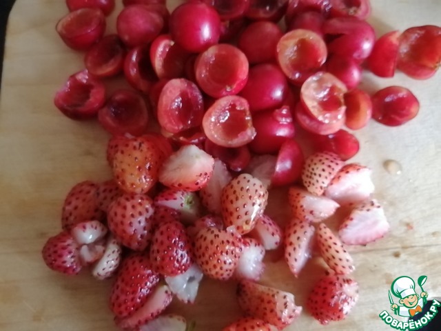 Подготовить ягоды для начинки: вымыть, высушить, освободить от косточек черешню, разрезать половинками