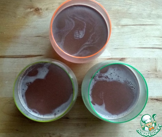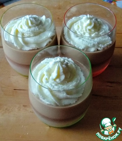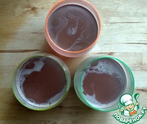 Разлить шоколадный слой по стаканам. Убрать в холодильник до застывания. После застывания шоколадный слой у меня разделился на светлый и болле темный.