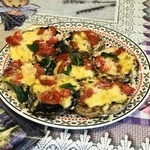 Потом нарезанный кубиками помидор, поперчим по вкусу. Отправляем в духовку, запекаем при 180 градусах примерно 25 минут, смотрите по своей духовке.