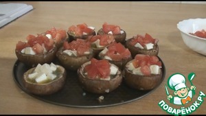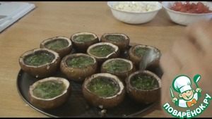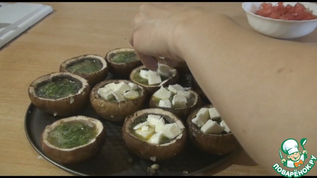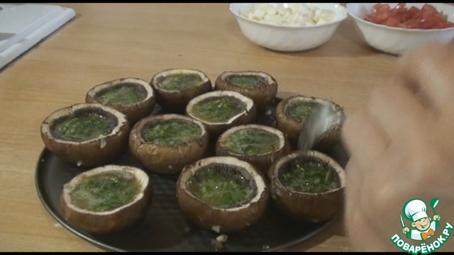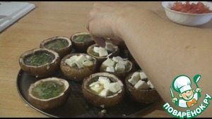 Наполняем шляпки яичной смесью примерно по столовой ложке в каждую.