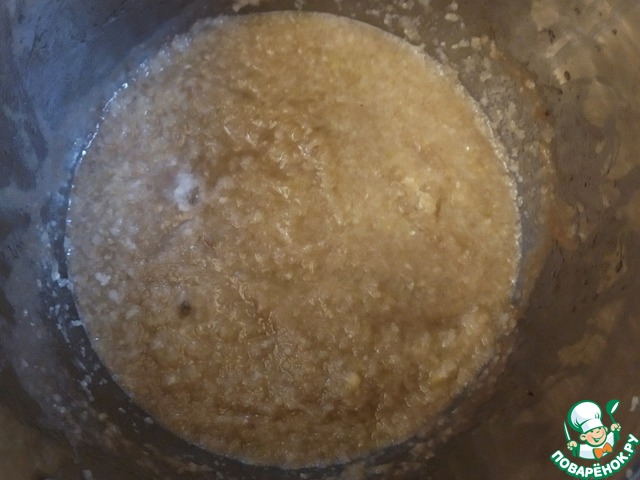 И ещё чуть погодя, разведённую в воде муку. Хорошо перемешиваем.
