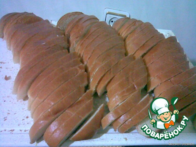 Растопить масло и обмакивать кусочек булочки с двух сторон.