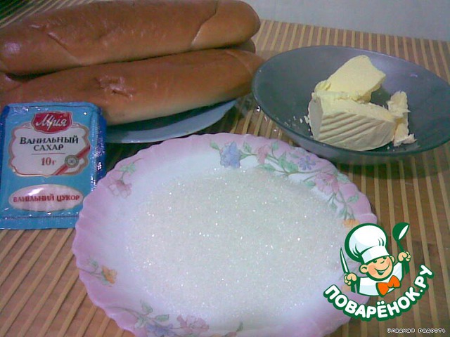 - Булочка (у нас они называются Днестровские.А раньше в СССР продавались в любом хлебном по 6 копеек.) — 3 шт