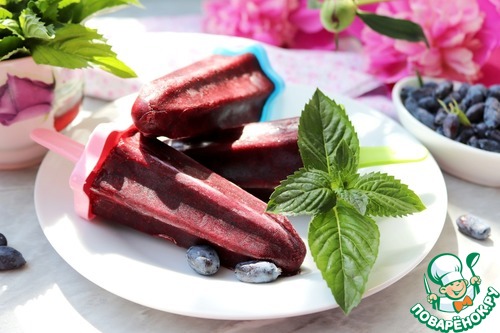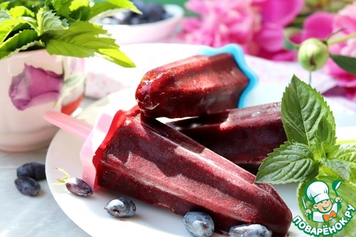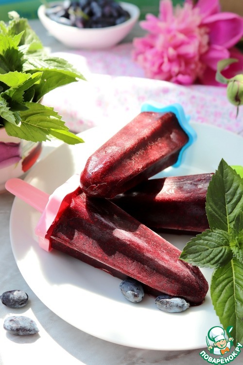 Рецепт «Фруктовый лёд из жимолости с мятой»: