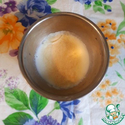 Желатин залить молоком, дать ему набухнуть минут 20, затем нагреть до растворения все время помешивая.
