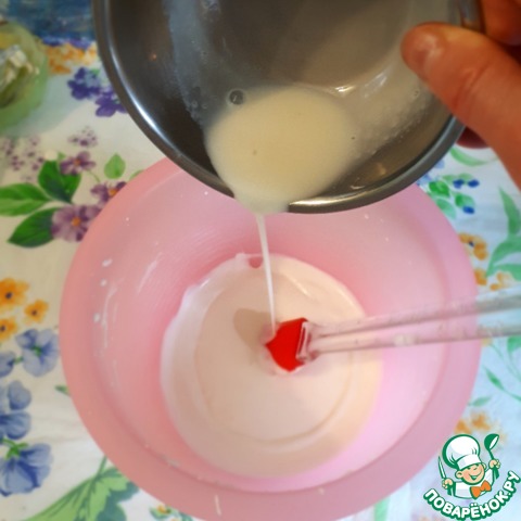 Залить холодной (кипяченой или бутылированной)водой 30 мл, оставить на 20 минут для набухания желатина.