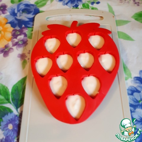 Клубнично-творожную массу долить в формочки, поставить в холодильник.