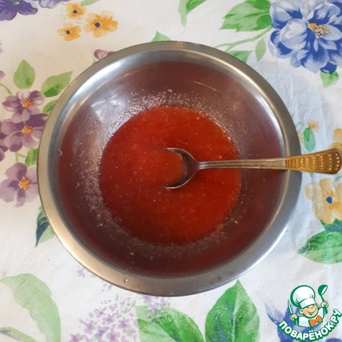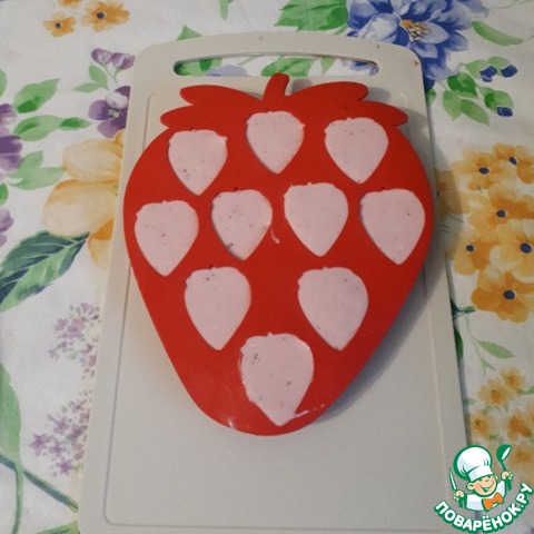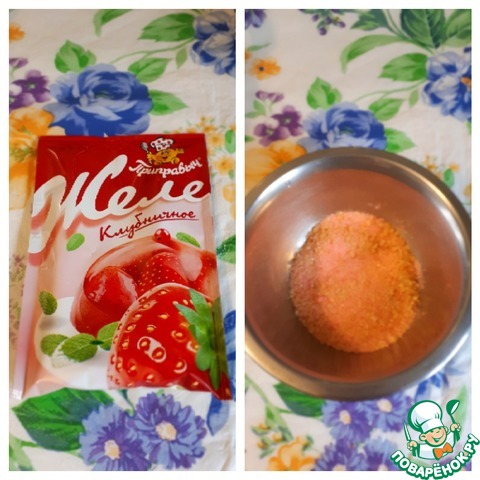 Взять сухую смесь для клубничного желе 45 гр., добавить еще 15 гр бысторастворимого желатина.