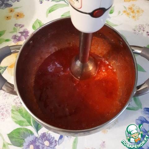 Проваренная клубника за это время уже остыла, пробить ее блендером.