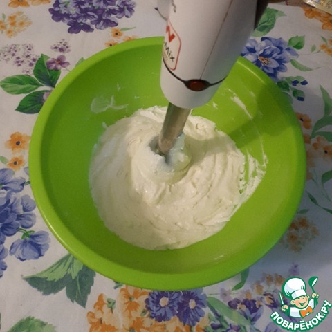 В творог добавить сахарную пудру, немного сливок, все хорошо пробить блендером, постепенно добавлять оставшиеся сливки. У меня часть сливок была 33 %, а часть 20%.