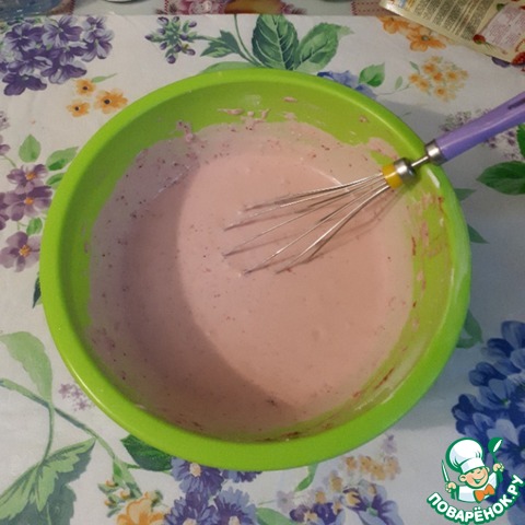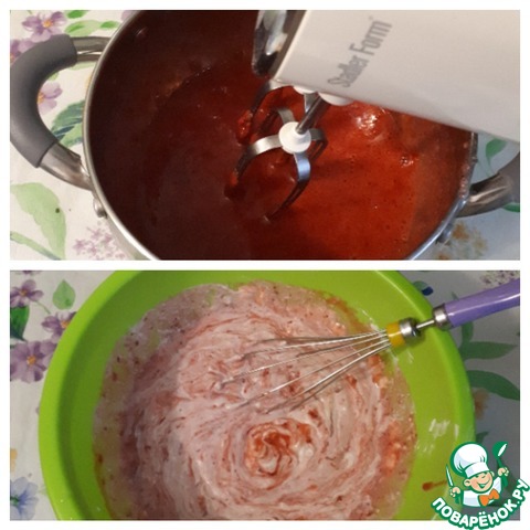 Клубничную и творожную массу хорошо перемешать венчиком.