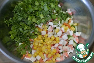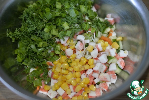 Рецепт «Салат с корейской морковью и крабо-палочками»: