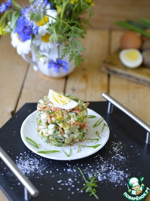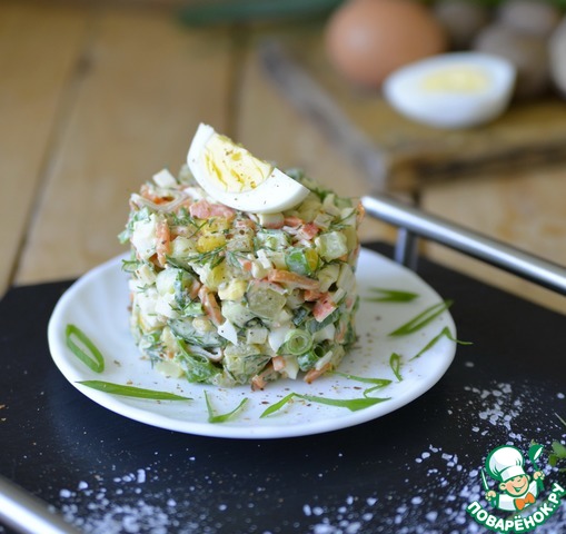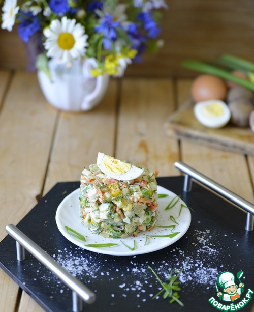 Салат для любителей крабовых палочек. У нас, конечно, на Дальнем Востоке, они хорошего качества, нет нареканий. Ещё один вариант сытного, майонезного, салата.