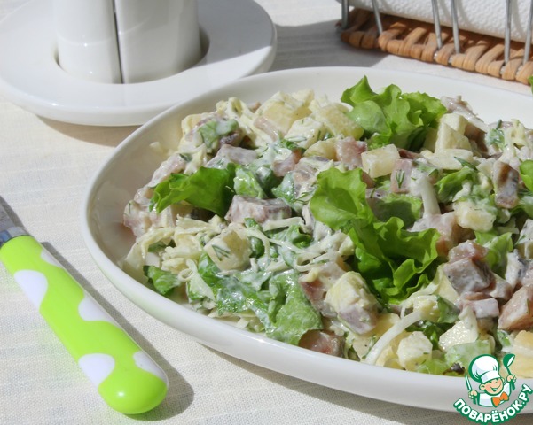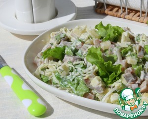 Простой селедочный салат, но с пикантной заправкой - нам понравился! Хотя сначала сочетание продуктов немного удивило. Пробуем?