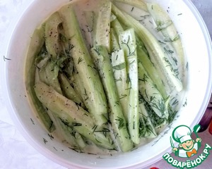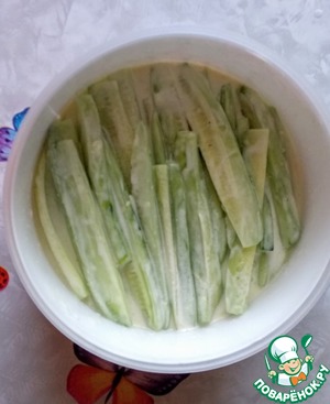 [+5]Прекрасная закуска, все строго по рецепту,исключение. Способ "разделки " огурцов.