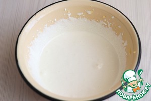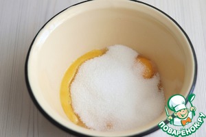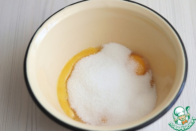 Взбить желтки вместе с сахаром до бела в пышную однородную массу.