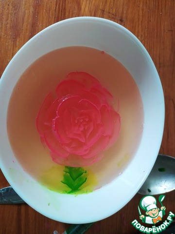Если немного нагреть емкость с желе и перевернуть ее, то получается вот такой цветок