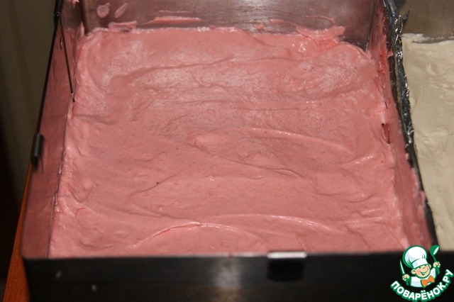 Поместить в форму такого же размера. Отправить в холодильник на 5 часов для стабилизации.