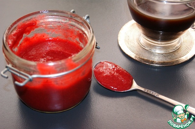Нарезанную клубнику проварить. Пробить блендером и протереть через сито для удаления семян. Вернуть в кастрюльку и уварить до уменьшения объема в три раза. Я готовила двойную порцию, жалею, что не приготовила больше. Пюре можно заморозить и готовить с ним чудесные муссы и кремы. -