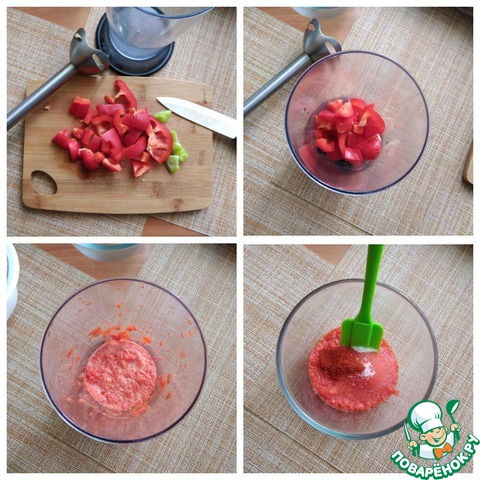 Болгарский красный перец нужно нарезать и выложить в блендер, налив 1 ст л воды.