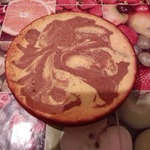 8. Вылить 3/4 части теста в форму. В оставшуюся 1/4 часть теста добавить какао-порошок (предварительно просеять), аккуратно перемешать и разложить в хаотичном порядке на светлое тесто. Затем деревянной шпажкой сделать узоры;