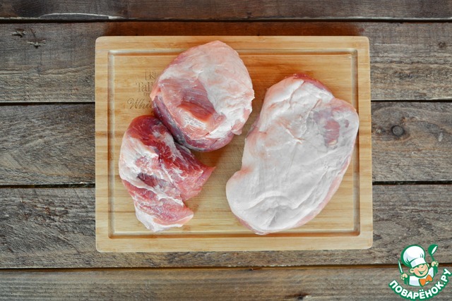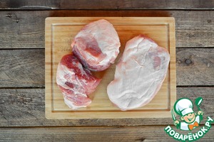Можно брать любые части свинины. Я готовила из лопатки. Желательно, чтобы куски были весом не более 500-700 г, иначе они не просолятся. Мясо должно быть полностью разморожено (если он было заморожено).