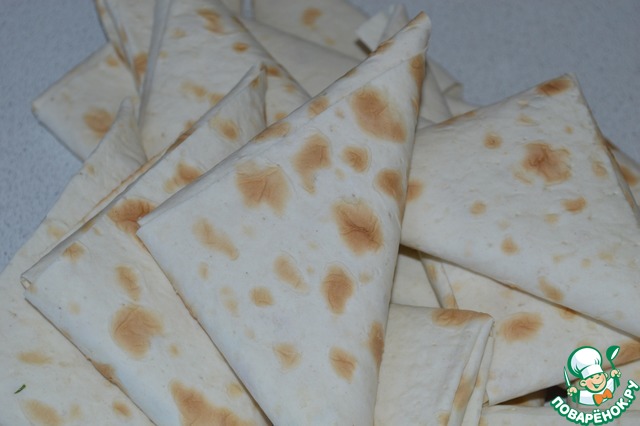 Рецепт «Хрустящие треугольнички из лаваша с творогом»: