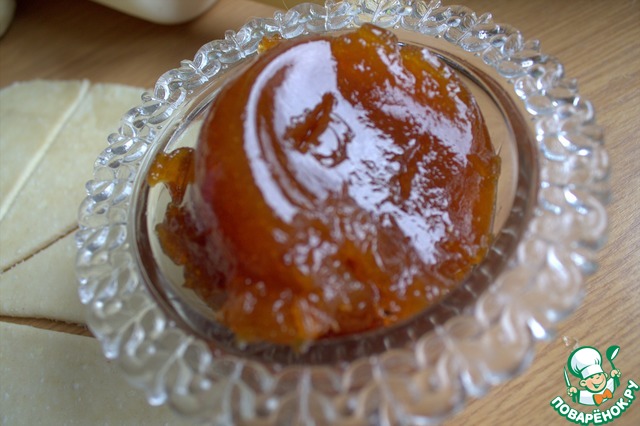 Для начинки берём любой густой джем. У меня джем из алычи (с добавлением корицы) вот так зажелировался-отлично подходит для начинки.