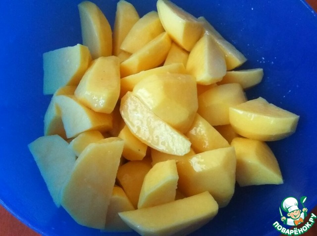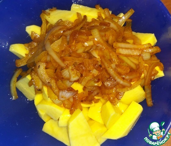 К картофелю добавить лук, соль и 2 ст л растительного масла.